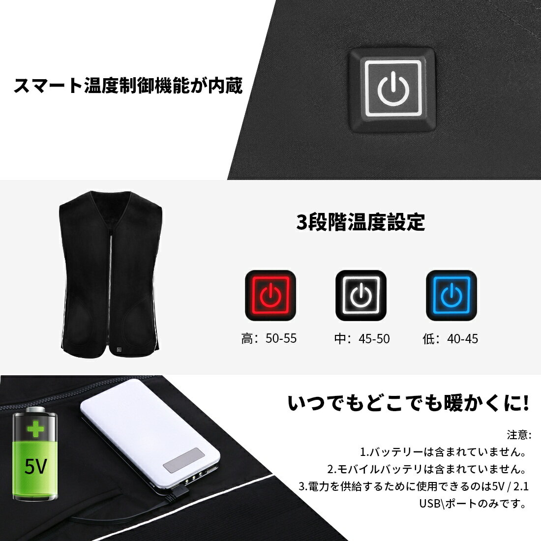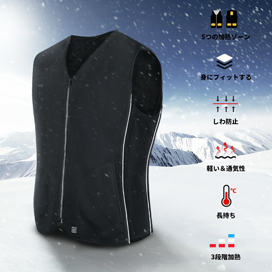 電熱ベスト ホットベスト ヒーター内蔵 発熱ベスト USB電熱ベスト 3段温度調整 5つヒーター付き 防寒 洗濯可 男女兼用 大雪対策 スキー スケート 登山 お釣り 3種サイズ