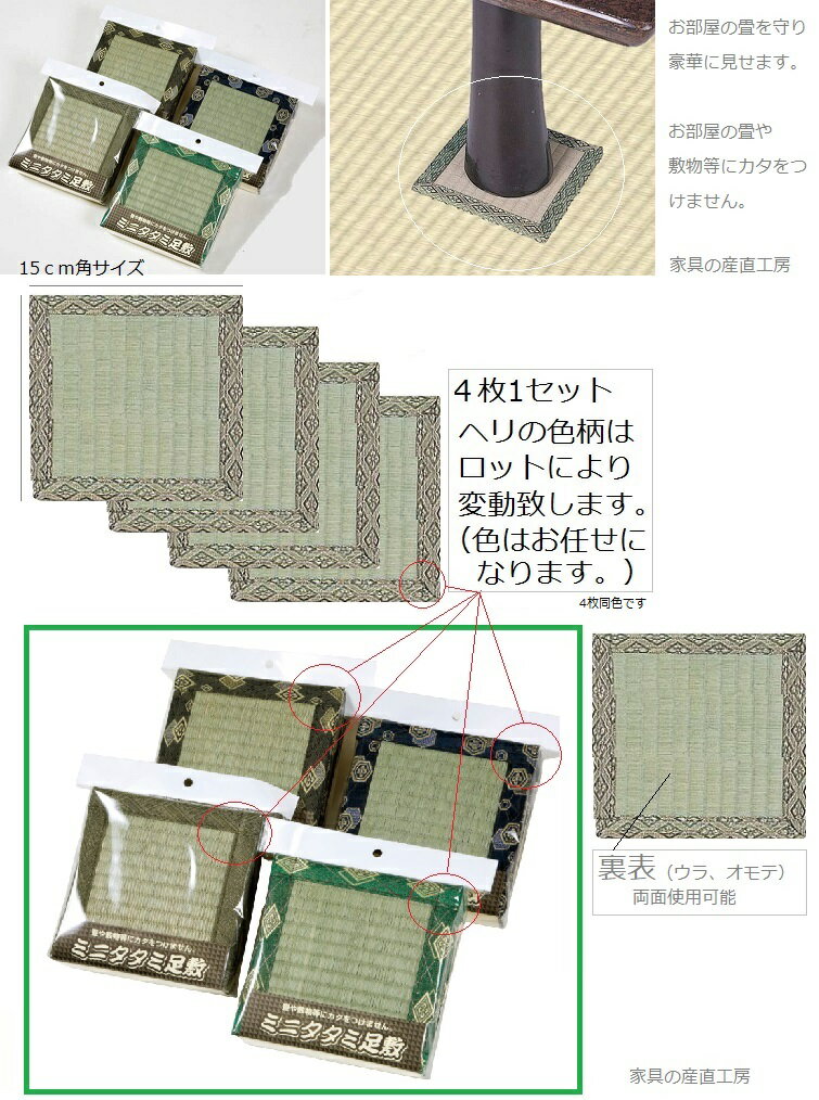 <い草 ミニたたみ足敷>15cm角<ミニタタミ><座卓脚敷><ミニ畳>4枚入り【日本製】【産地直送価格】畳ガード脚敷き