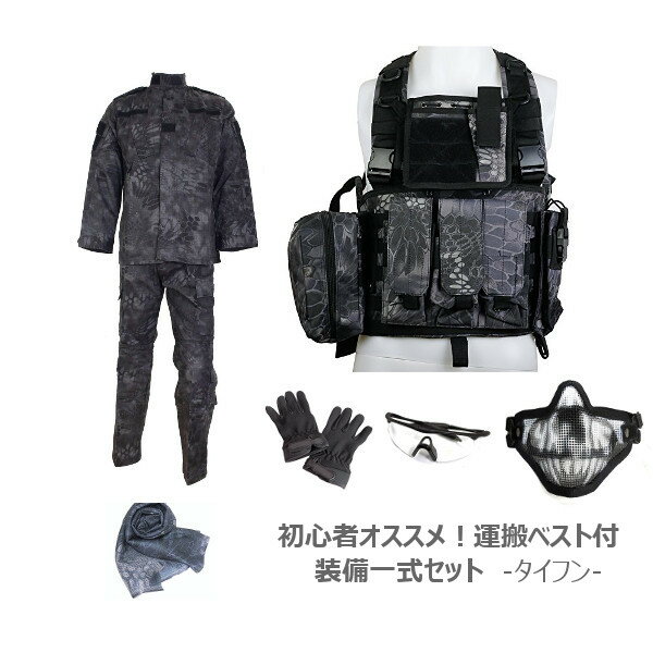 Broptical 初心者応援! 迷彩服 戦闘服 上下 帽子 防具 ベスト ポーチ フルセット タイフン クリプテック迷彩 小さいサイズ 大きいサイズ ミリタリー 服装 サバイバルゲーム サバゲー 迷彩 服 メンズ レディース 初心者