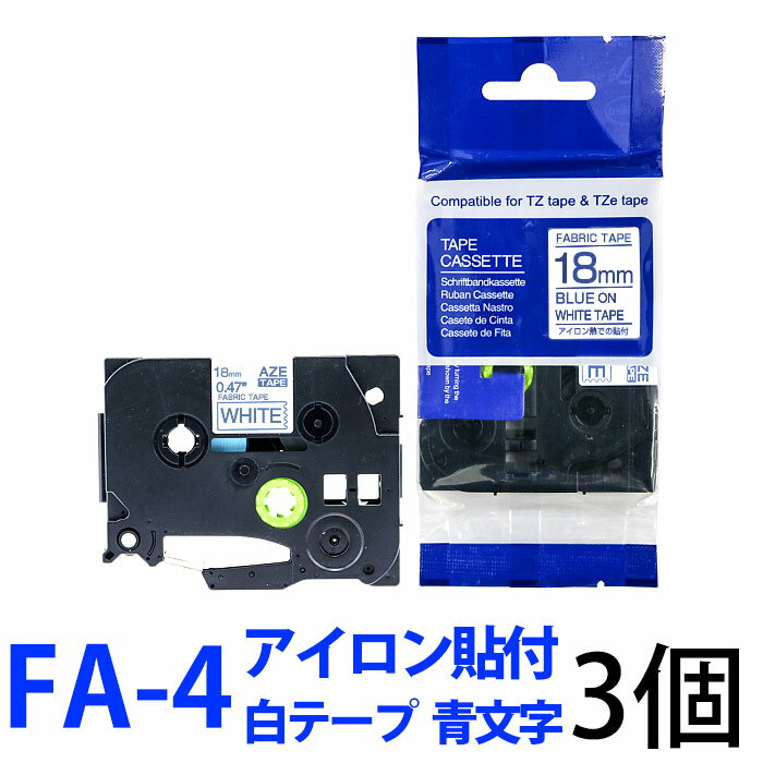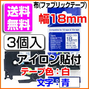 TZeテープ ピータッチキューブ用 ファブリックテープ 互換 18mm 白テープ 青文字 TZe-FA4対応 アイロン貼付 お名前シール 布テープ 名前シール ブラザー ピータッチ テープ 3個セット