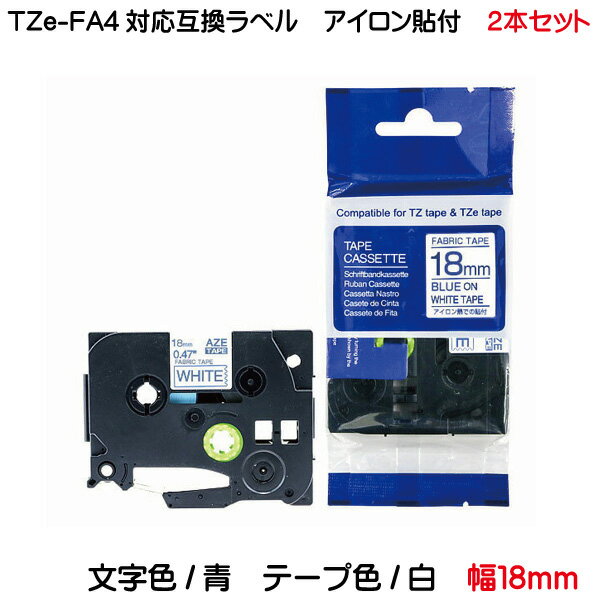 TZe-FA4 対応 TZeテープ ピータッチキューブ用 互換テープカートリッジ 18mm 白地 青文字 2本セット ファブリックテープ アイロン貼付 お名前シール 布テープ 名前シール マイラベル ラベルライター 汎用 ピータッチ テープ P-TOUCH CUBE対応